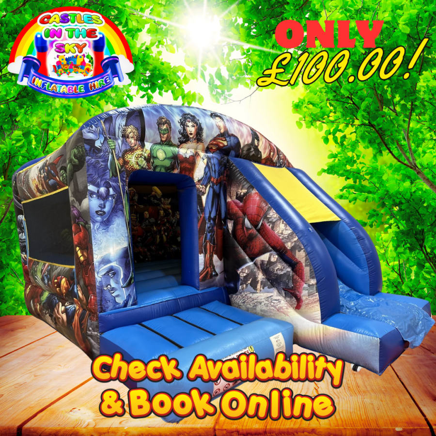 When it comes to visual appeal, our Superhero Bounce & Front Slide Castle stands out from the rest. With its vibrant colours, detailed superhero designs, and impressive front slide, this castle is sure to captivate the imaginations of children and transport them to a world of crime-fighting adventures. ๐