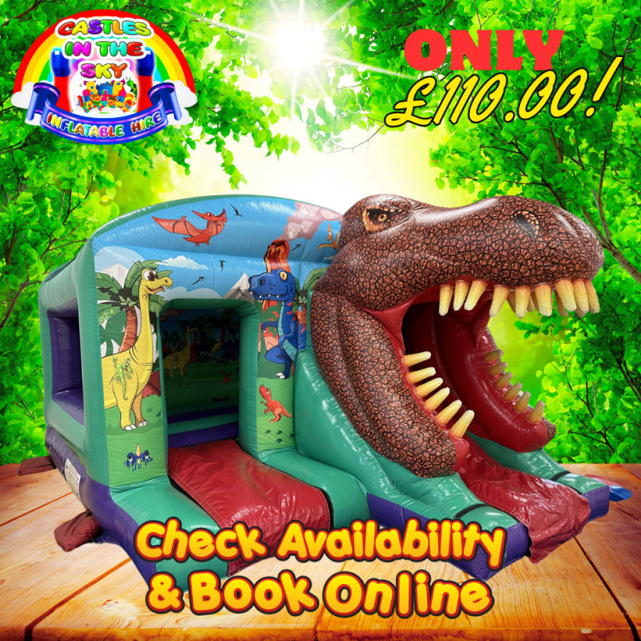 🚚 Delivery Areas: Our Dinosaur Bounce & Front Slide Castle is available for hire in Gloucester, Cheltenham, Stroud, Tewkesbury, Cirencester, and most of the surrounding areas. Bring the prehistoric fun right to your doorstep!