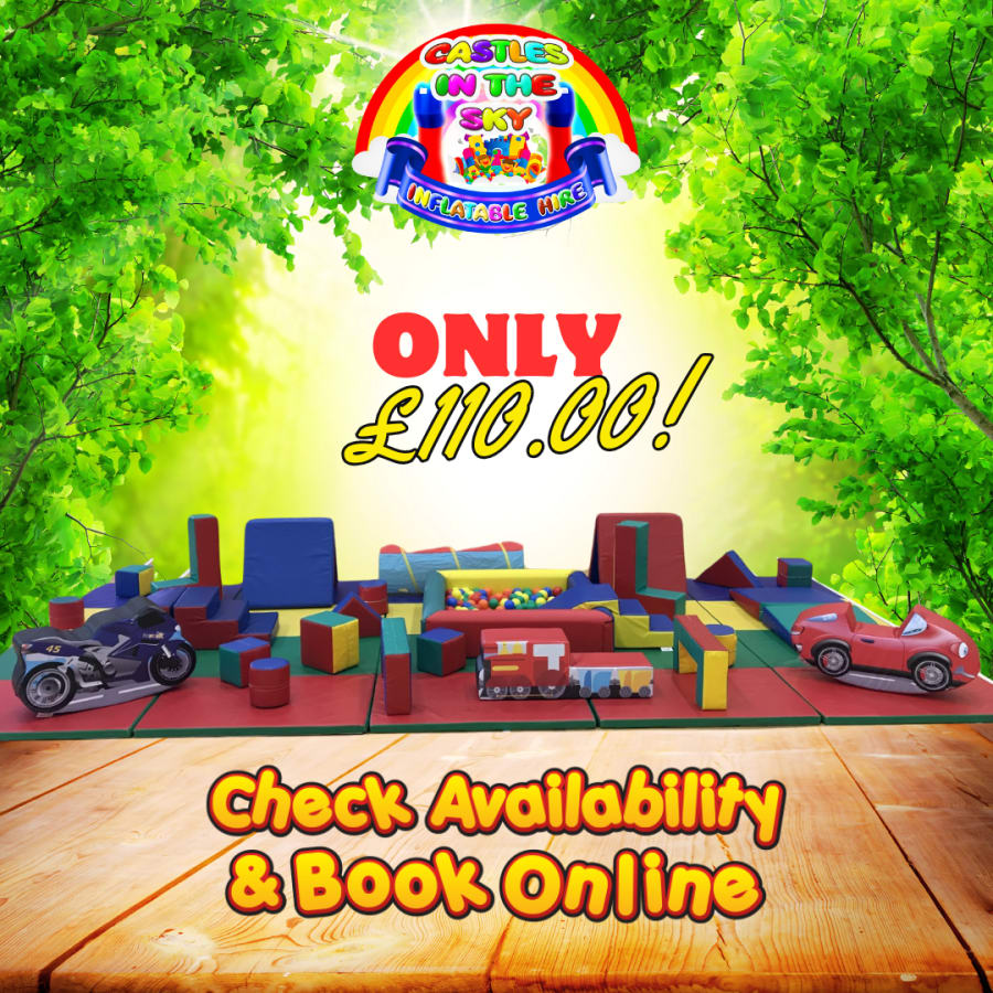 Introducing our multi coloured themed softplay, this is a truly stunning set up, complete with ball pit, rockers, soft play shapes, step n slid, tunnel etc,