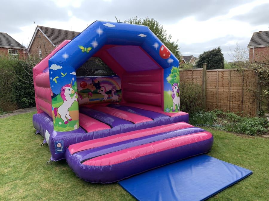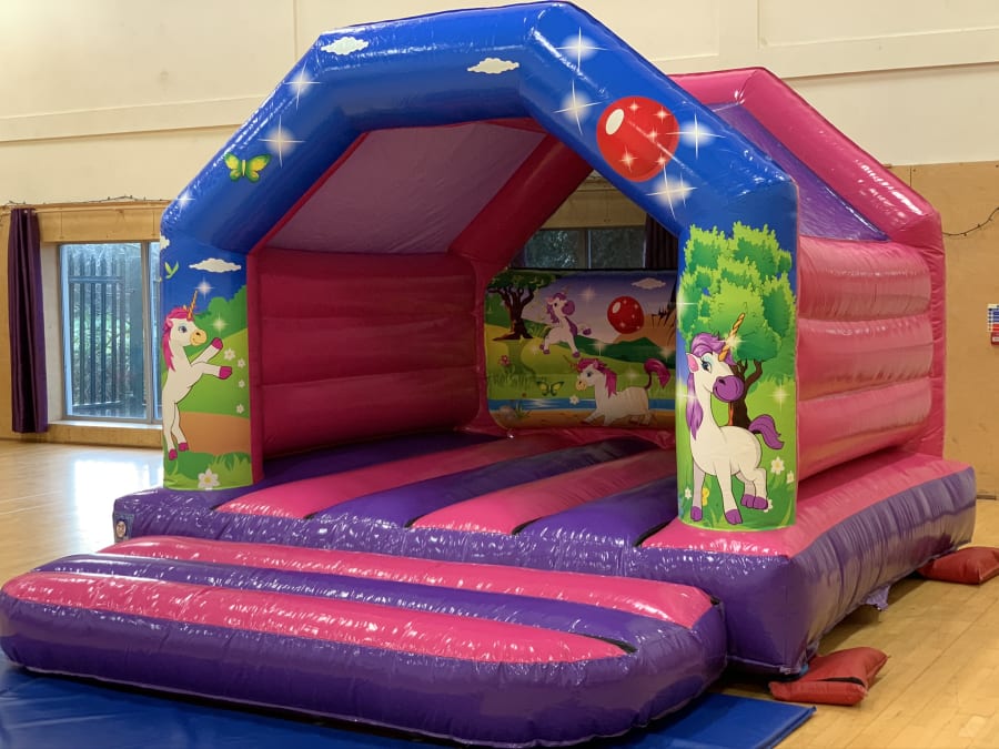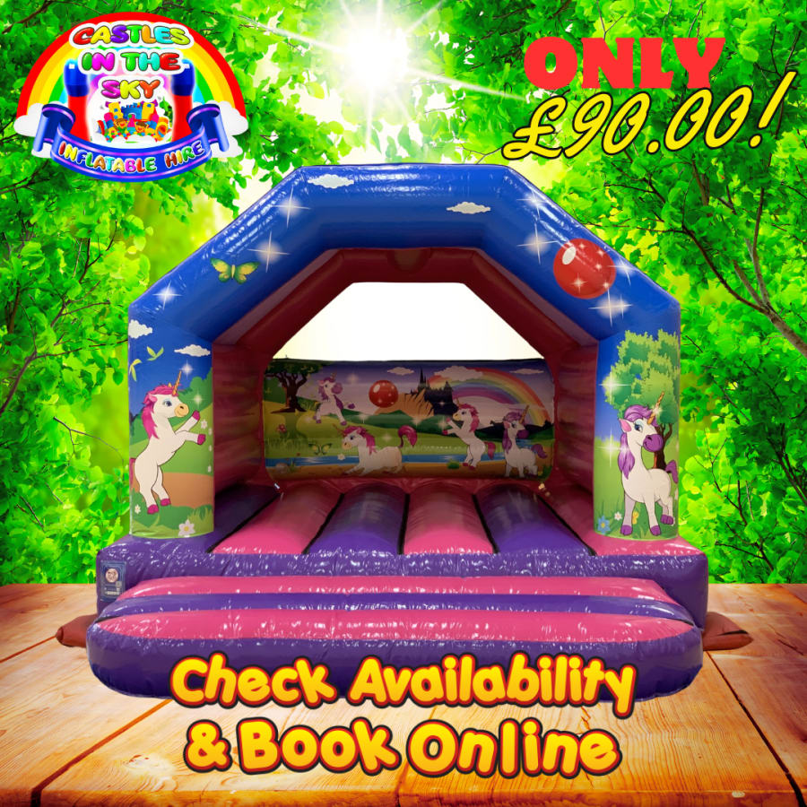 Our Unicorn Bouncy Castle features vibrant and whimsical digitally printed artwork that showcases majestic unicorns, adorned with beautiful rainbows. With its eye-catching design, this bouncy castle is sure to captivate the imaginations of children! Looking to add a touch of magic to your next event? Our Unicorn Bouncy Castle is the perfect addition to create an enchanting and memorable experience! ๐ฆ