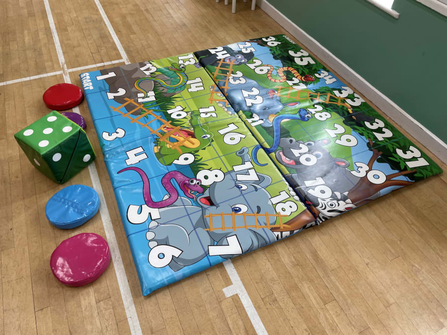 Players themselves act as the counters in this garden version of the classic game and move up the ladders and down the snakes on a 3 metre square plastic mat, with a giant foam dice to determine your score, this is an all round family game.