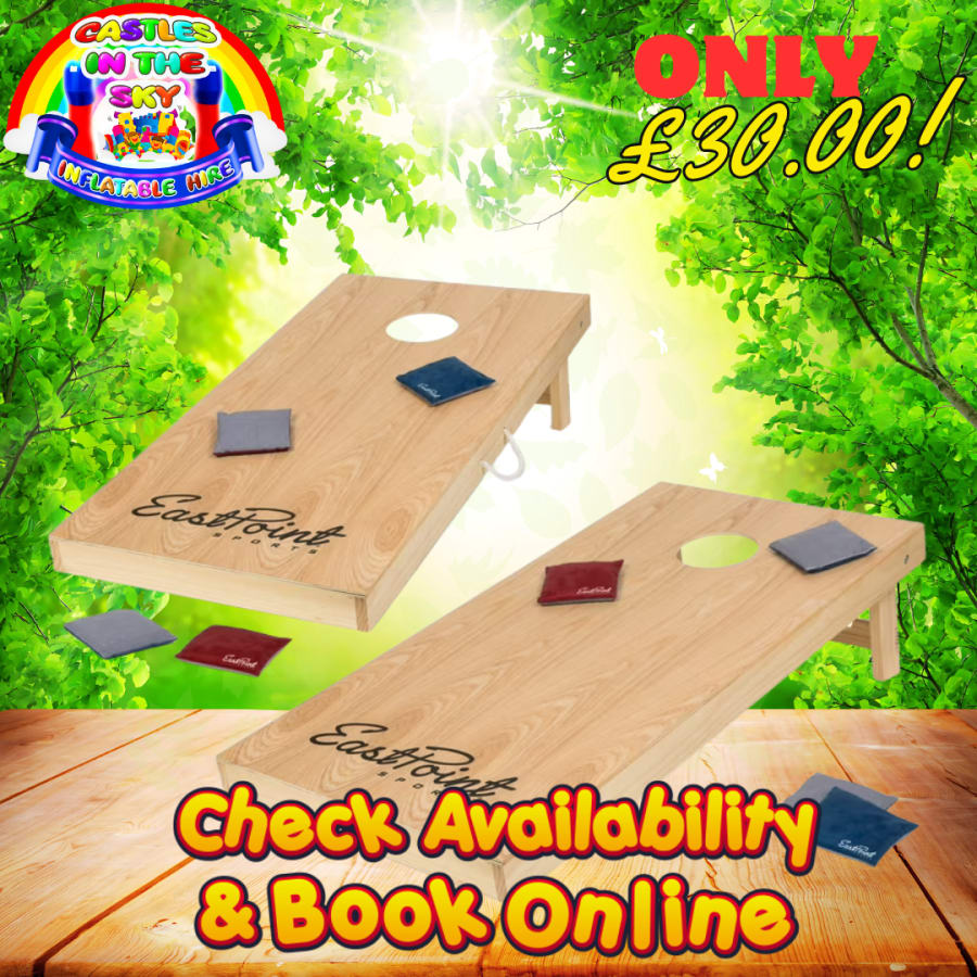 From casual back garden gatherings to corporate events, bean bag toss / cornhole is a crowd-pleaser. Create lasting memories and spark friendly rivalries as players aim for the target and compete for bragging rights. Great for weddings, festivals, school fairs, and more!