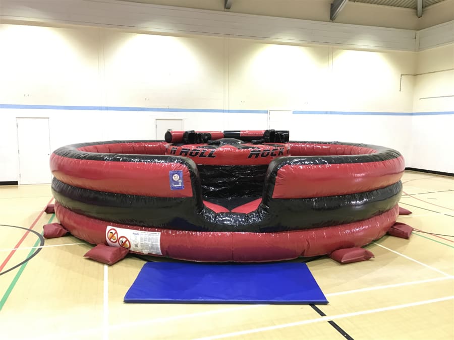 The Rock n Roll Gladiator Duel takes the classic gladiator joust to the next level. Two participants step onto the raised podium, equipped with full-length pugil sticks and helmets. The inflatable bed and surrounding wall ensure safety while adding to the adrenaline-fueled excitement. But here's the twist - the podium itself tilts and leans, making it even more challenging to maintain balance and defeat your opponent.